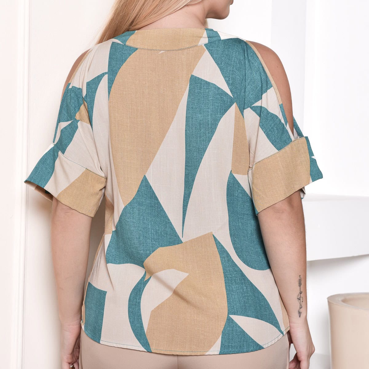 Blusa Estampada com Decote em V – Tamanhos M, G e GG