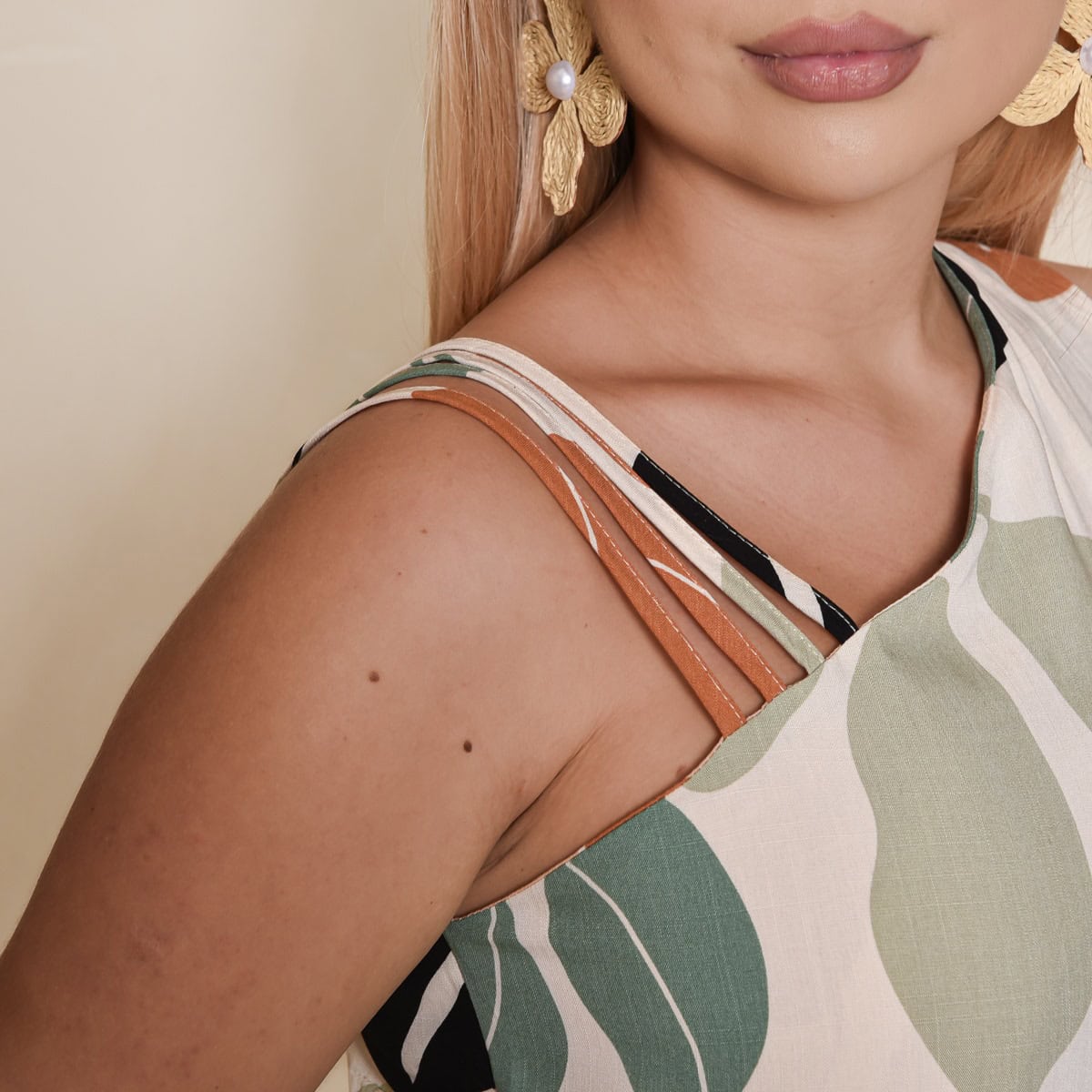 Blusa Estampada Feminina em Viscolinho com Detalhe na Alça – Tamanhos M, G e GG