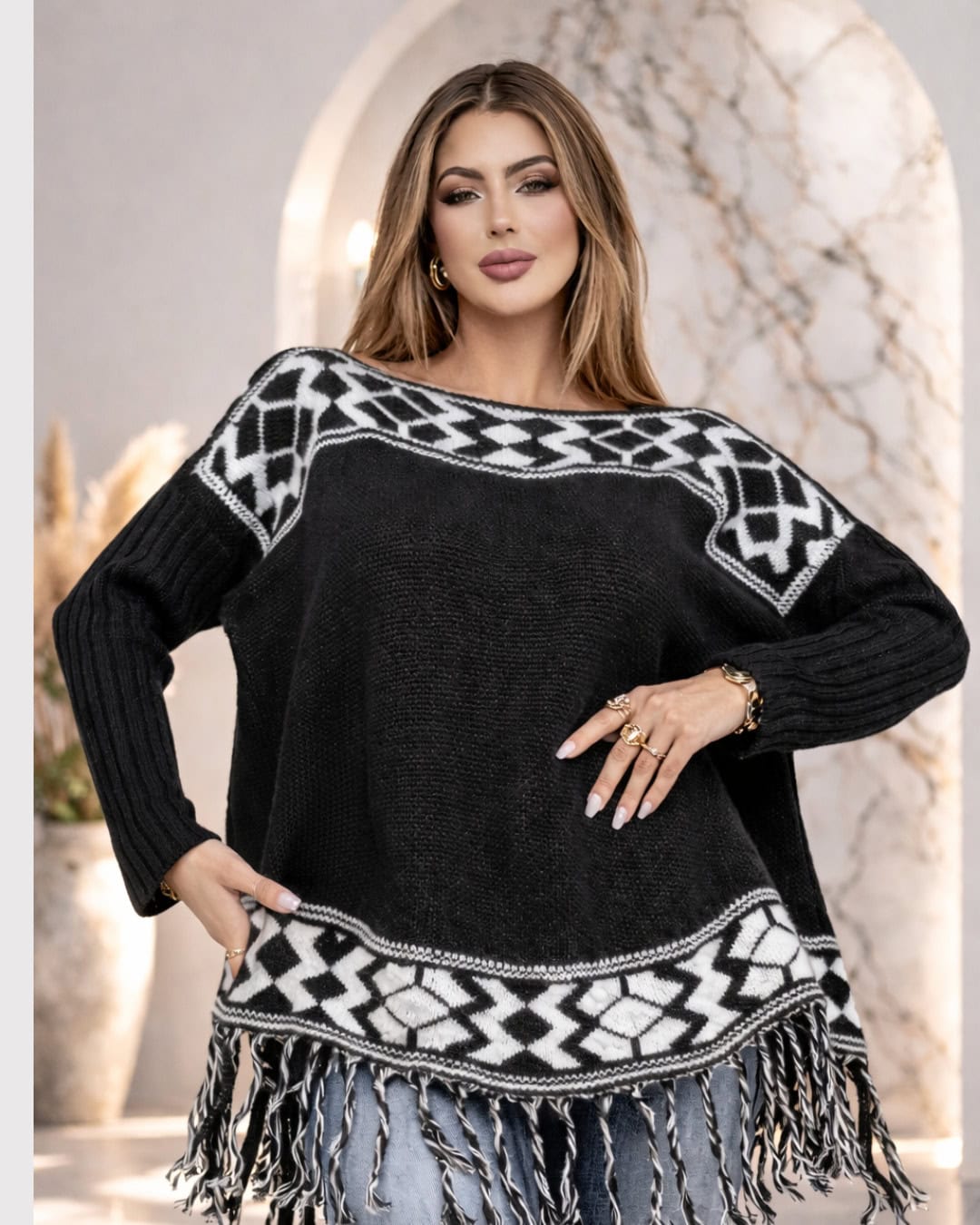 ✔ Modelagem estilo poncho (confortável e elegante)
