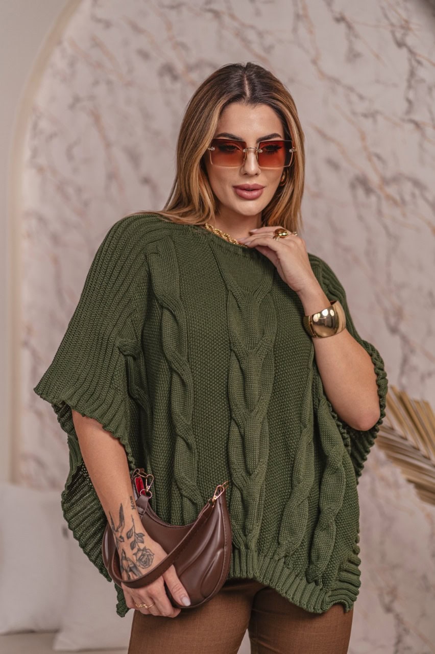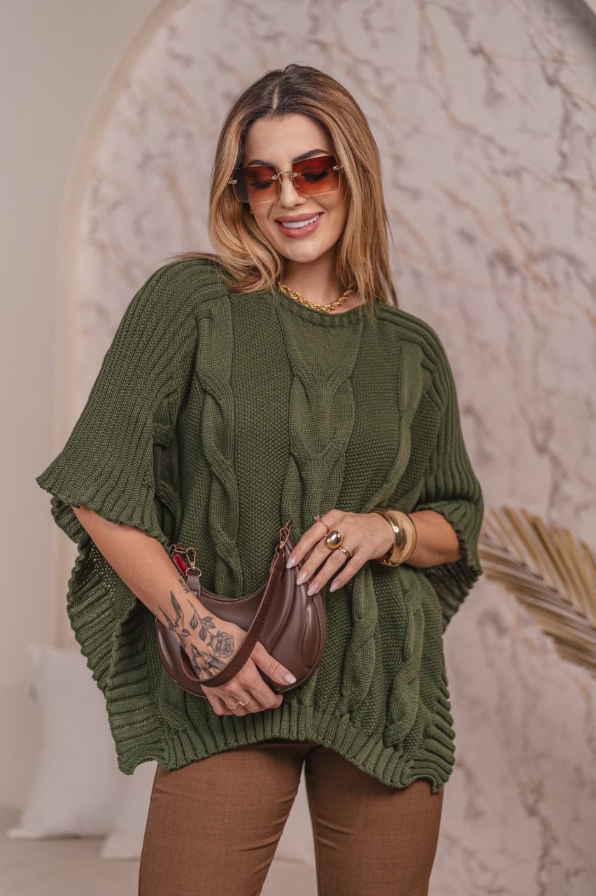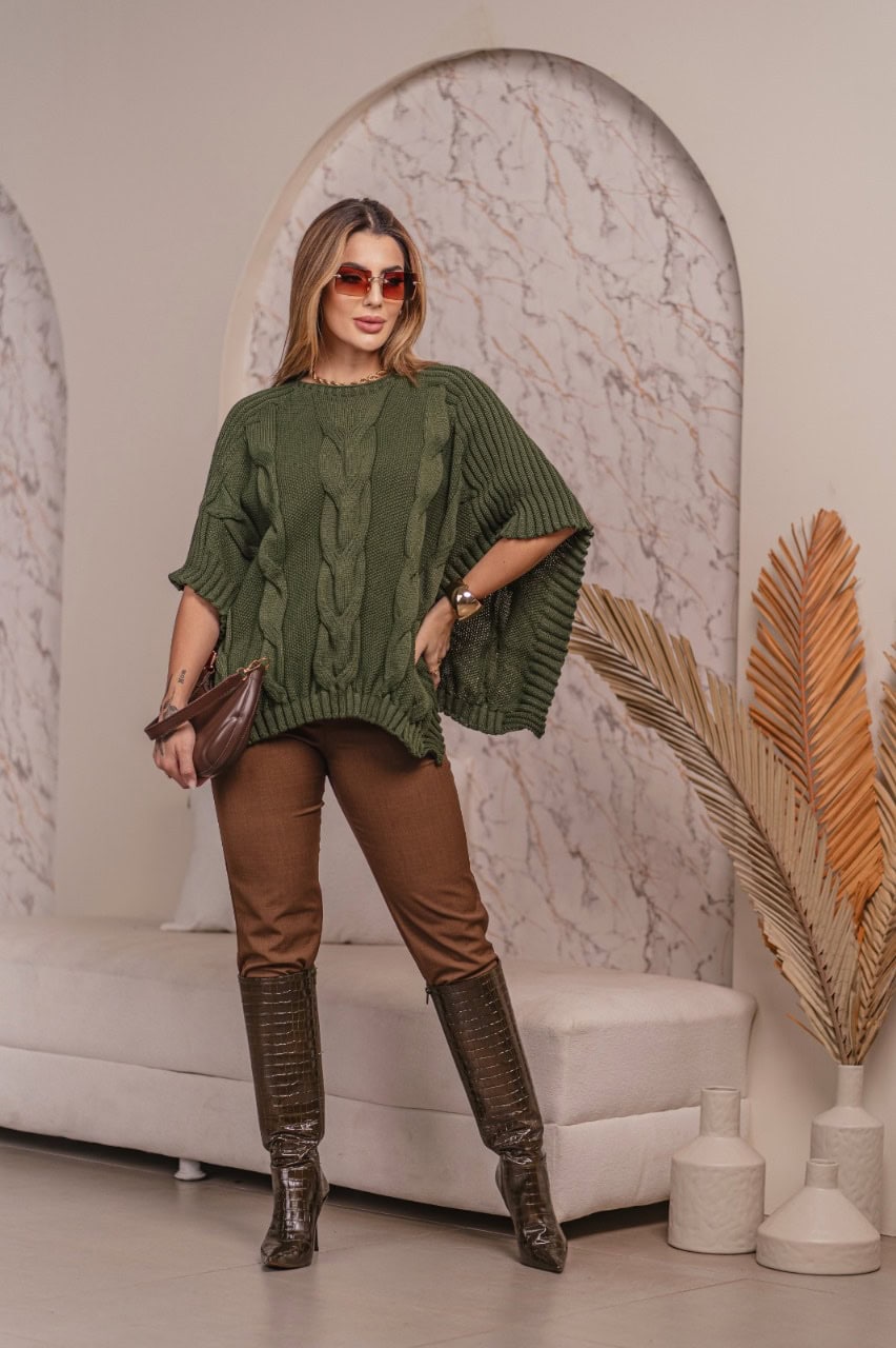 Transforme seus looks com a Blusa Poncho de TRICÔ, com seus Detalhes únicos e Charmosos!