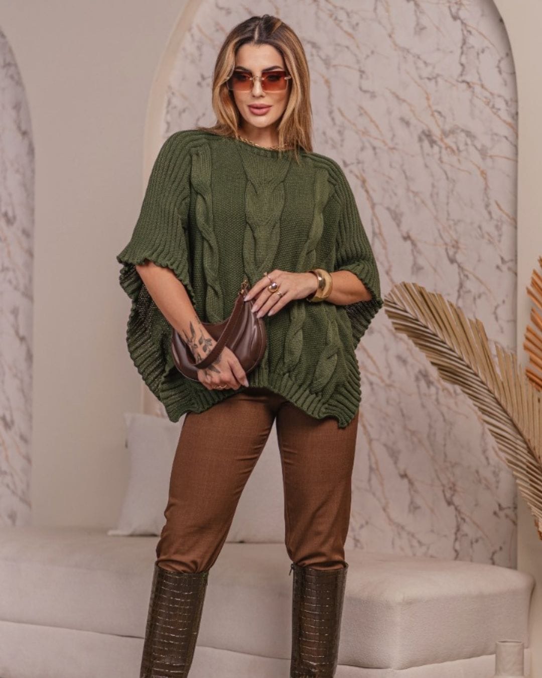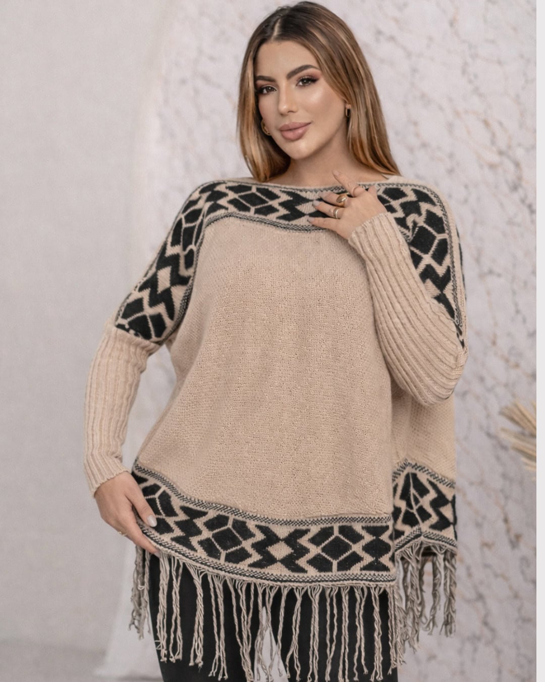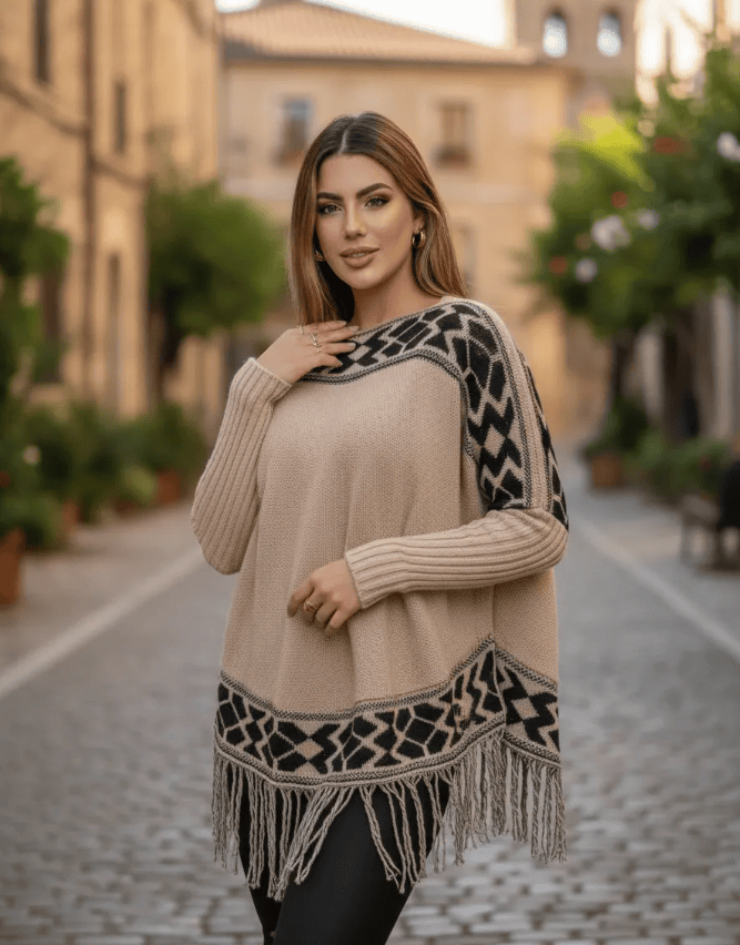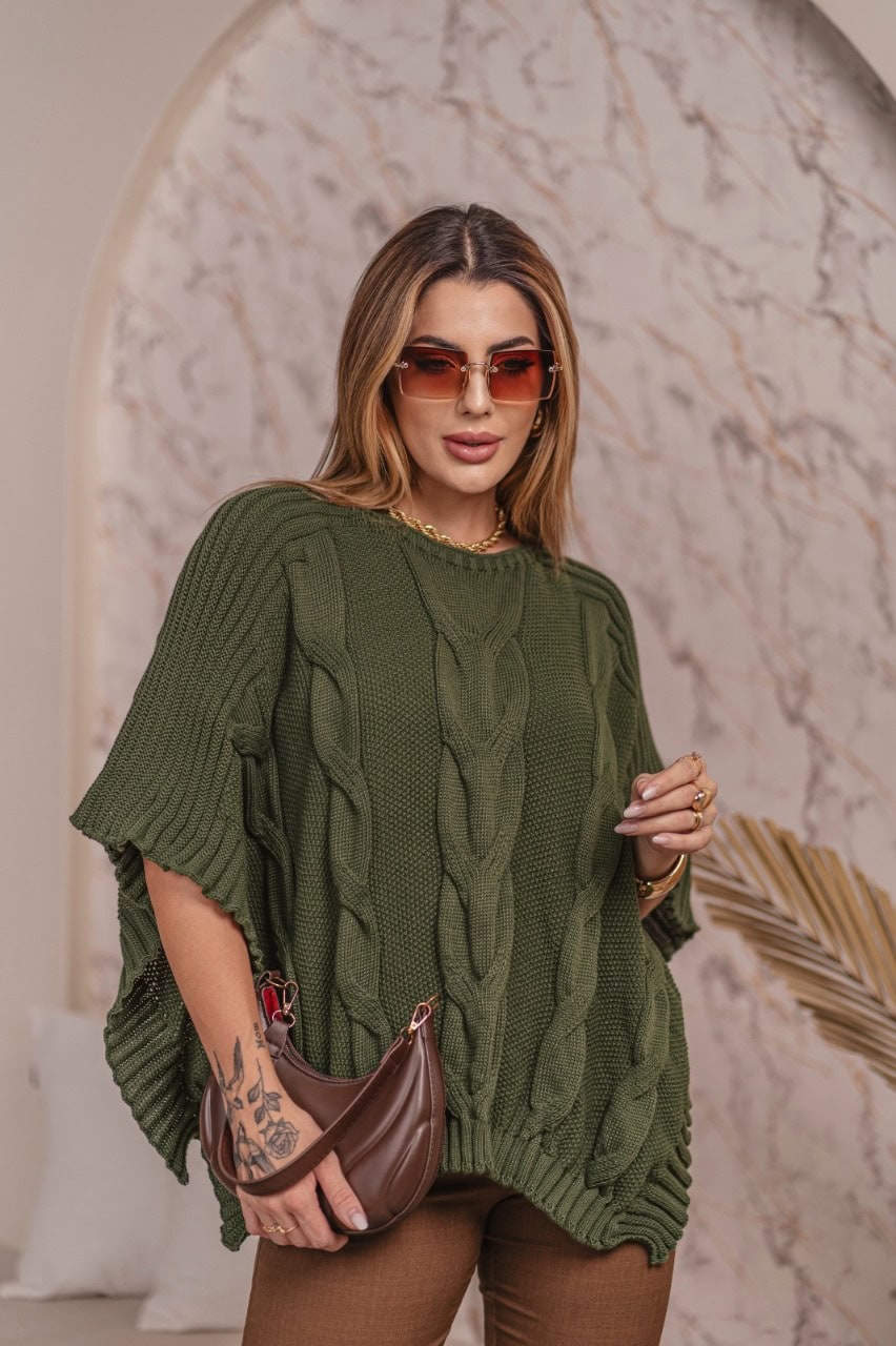Transforme seus looks com a Blusa Poncho de TRICÔ, com seus Detalhes únicos e Charmosos!