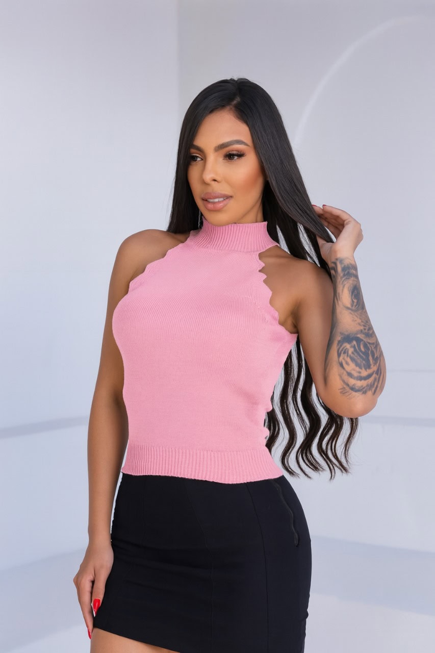 Blusa Feminina Modal Sem Manga Gola Alta – Tamanho Único