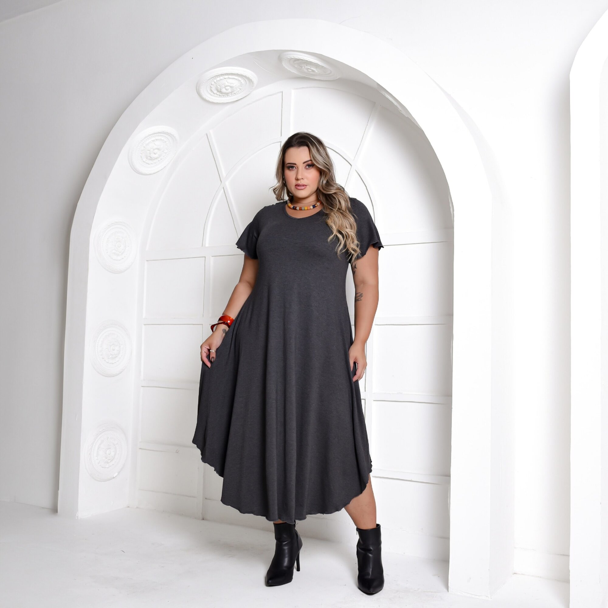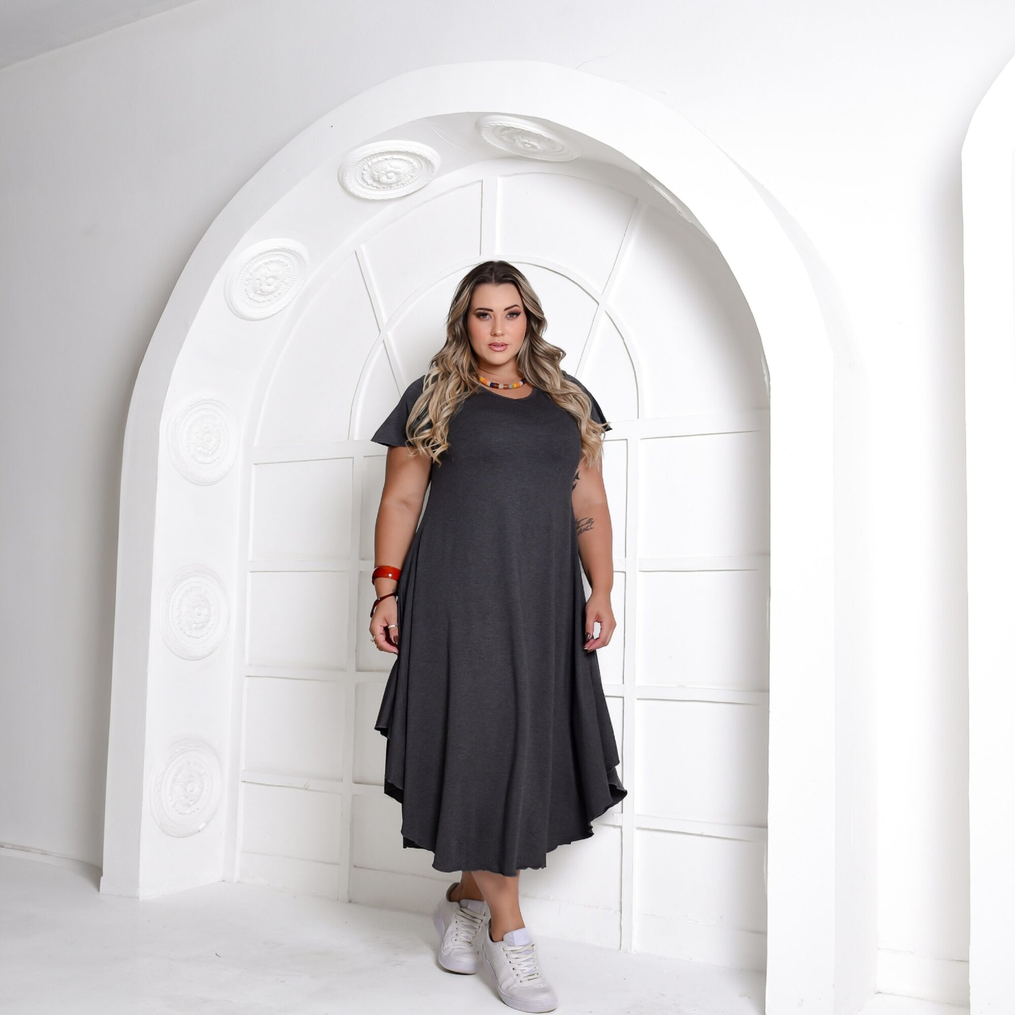 O Vestido de Malha PLUS é a escolha ideal para quem busca um look versátil, moderno e confortável. Feito em malha viscose premium com elastano, ele proporciona um toque macio, caimento soltinho e modelagem que valoriza suas curvas sem marcar.
