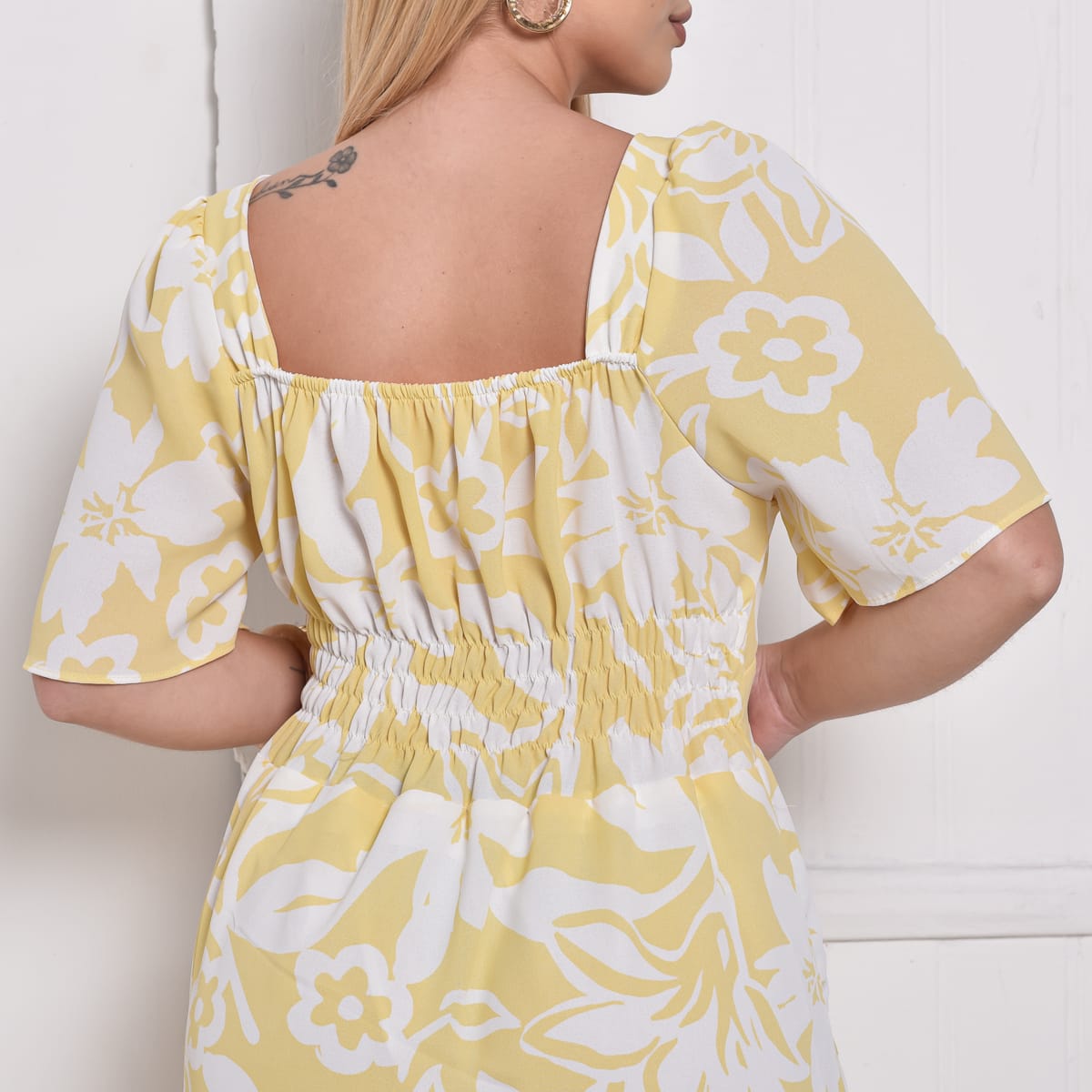 Cor amarela com estampa floral em branco