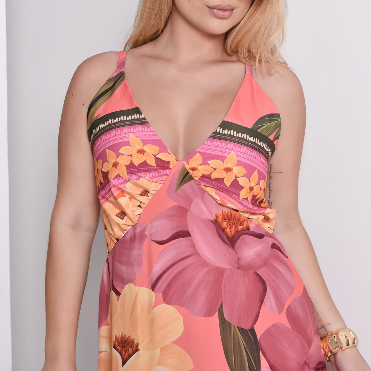 Encante-se com o Vestido Longo inspiração em estampas tropicais, desenvolvido para mulheres que amam unir elegância, conforto e praticidade.