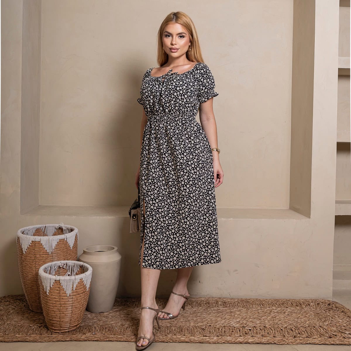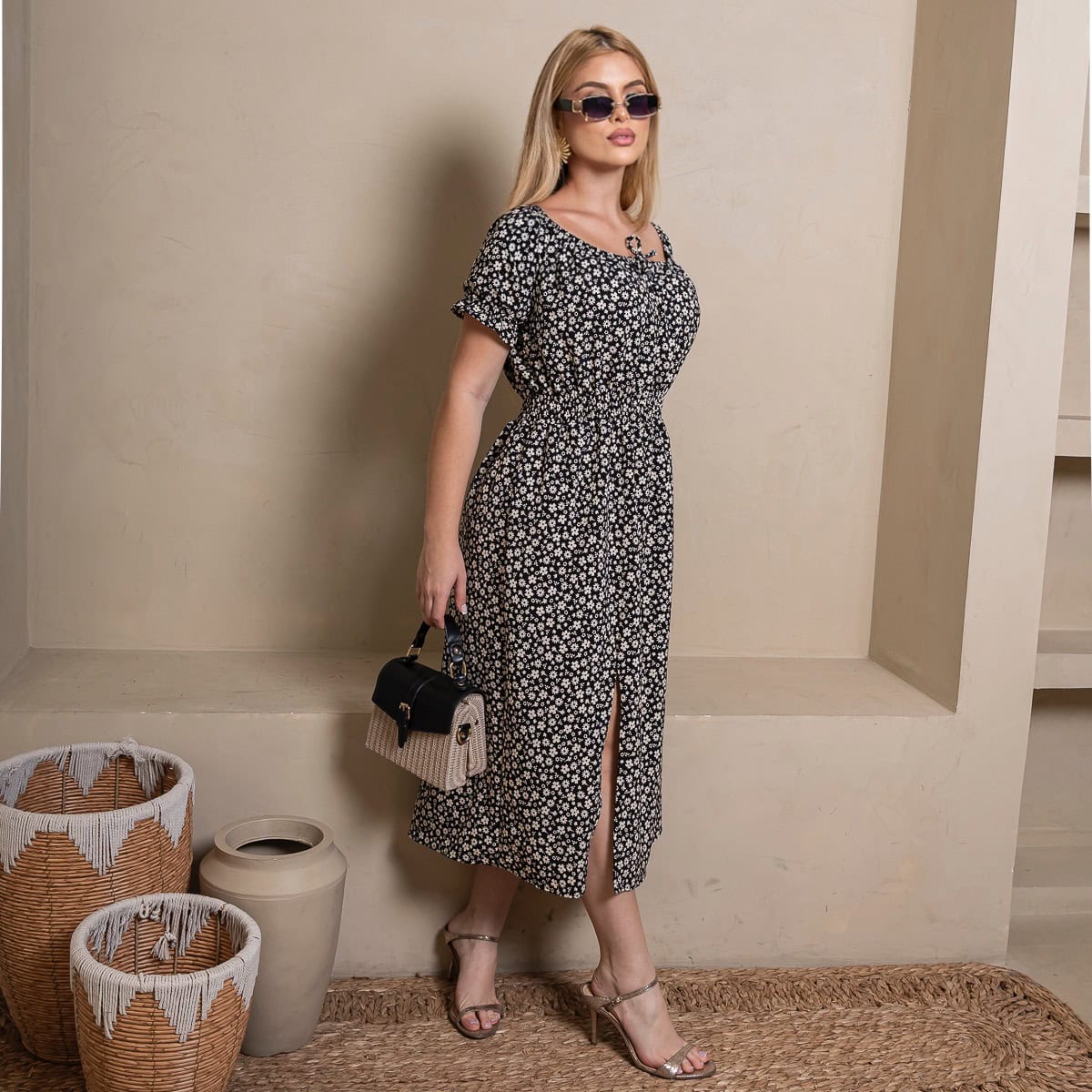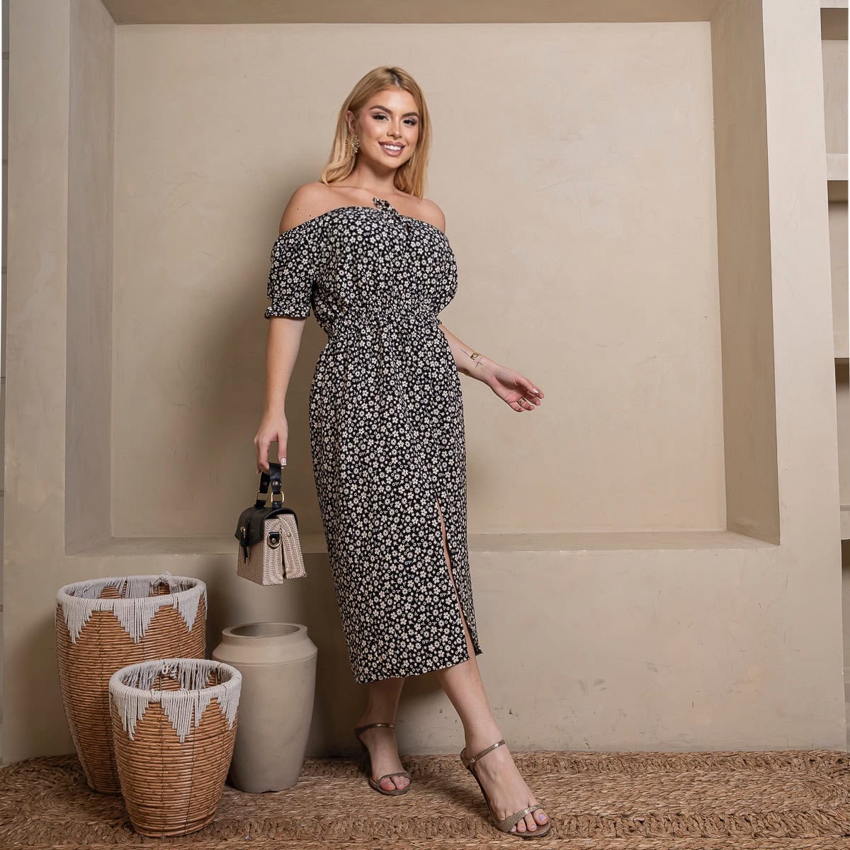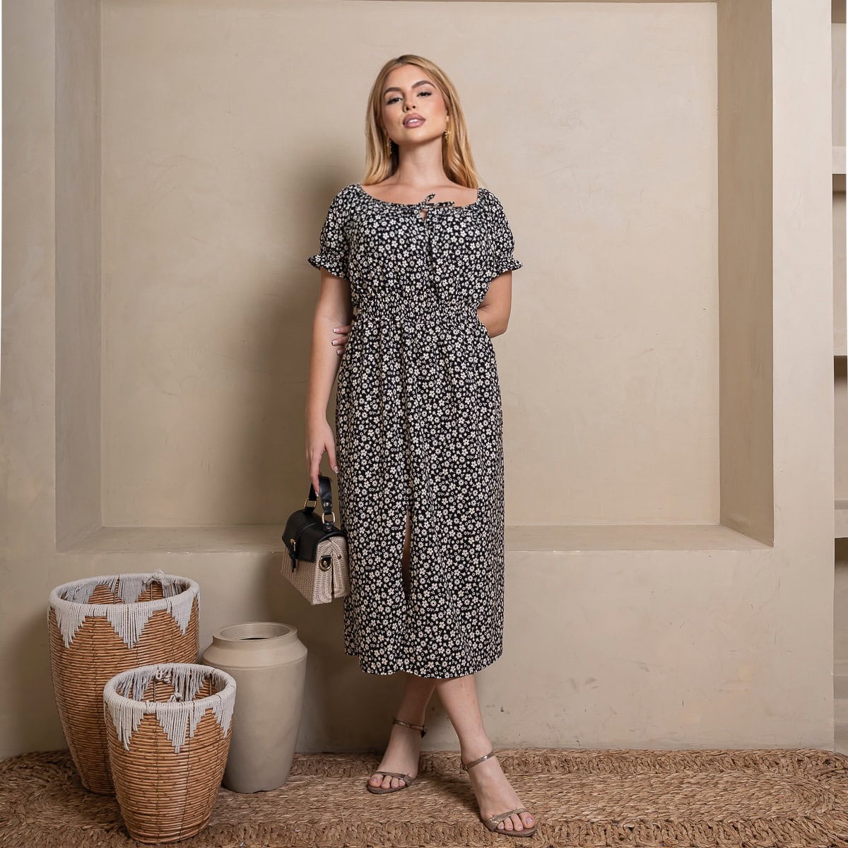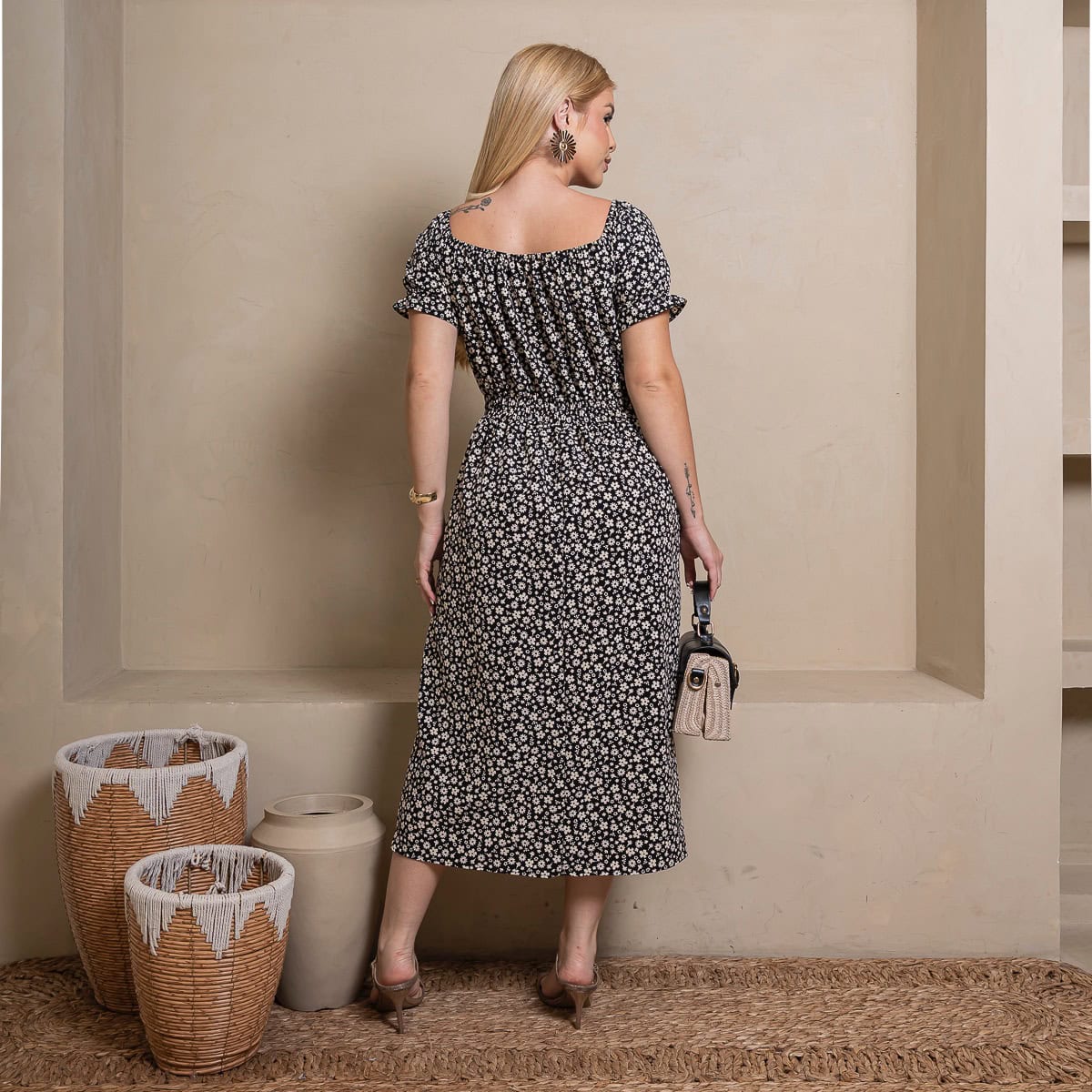 O Vestido Ciganinha Midi Floral Preto é aquele clássico moderno que nunca sai de moda! Elegante, versátil e superconfortável, ele é ideal para quem ama unir praticidade e estilo em uma única peça.