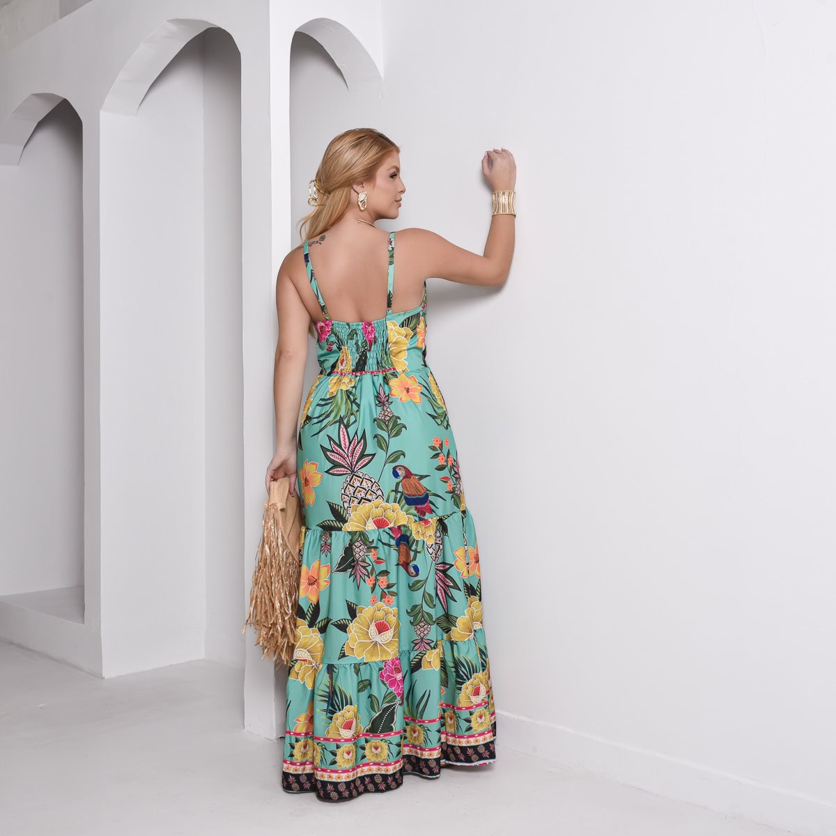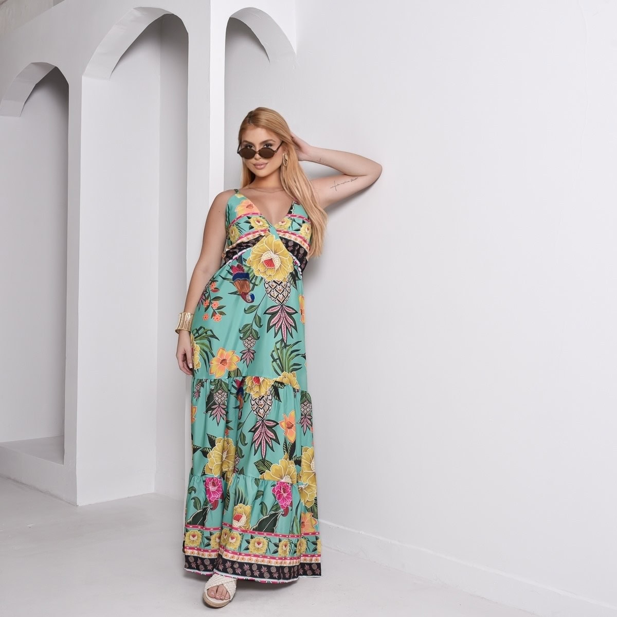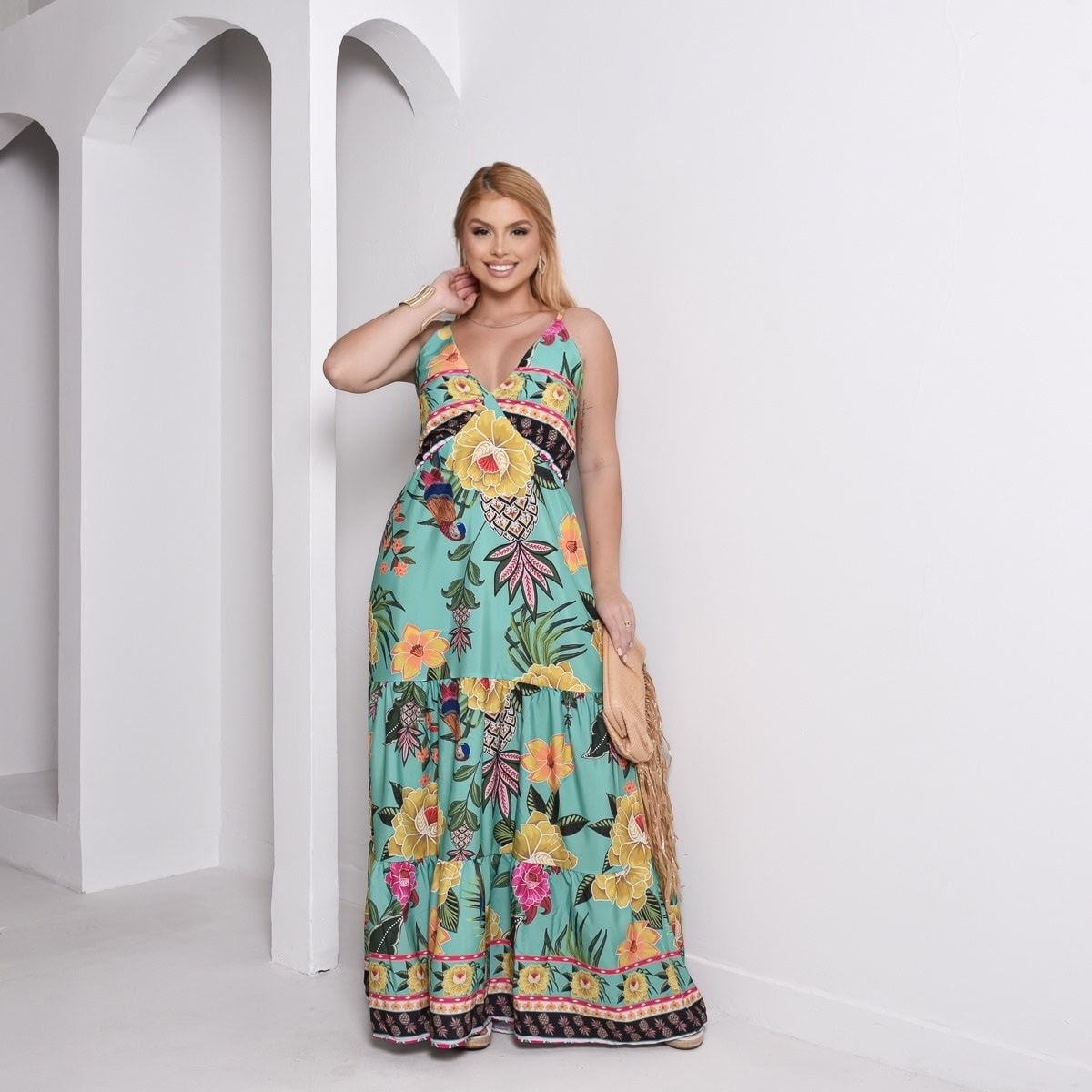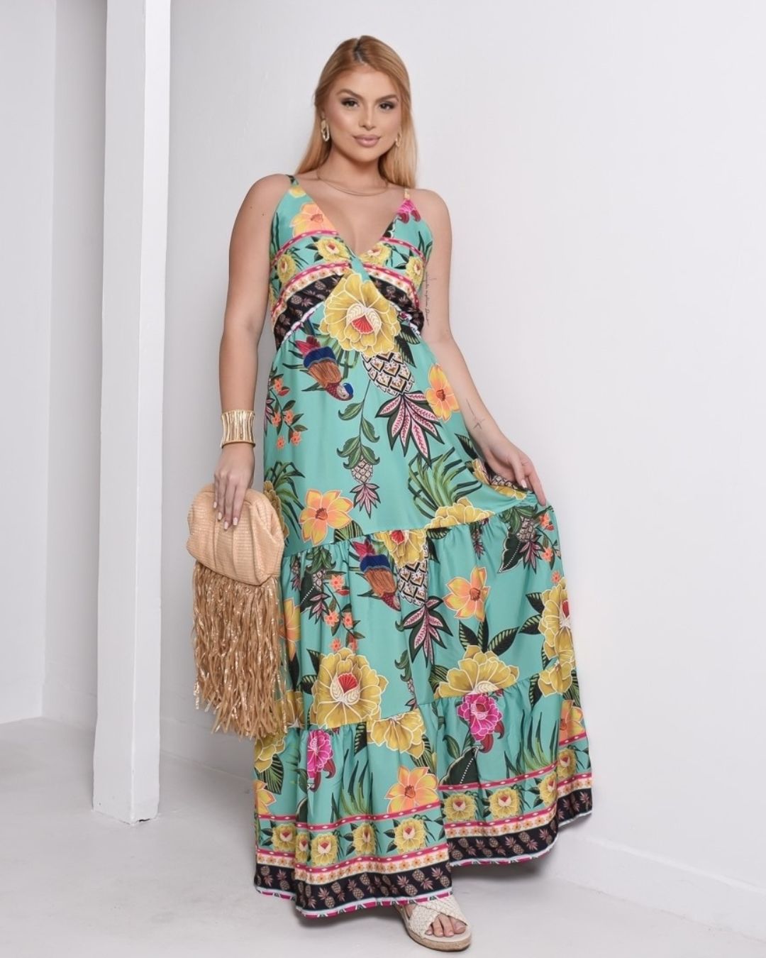 👗 Vestido Longo inspiração em estampas tropicais