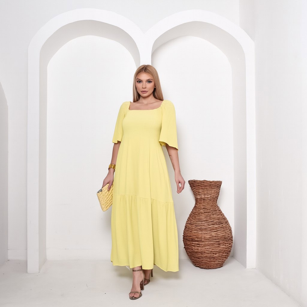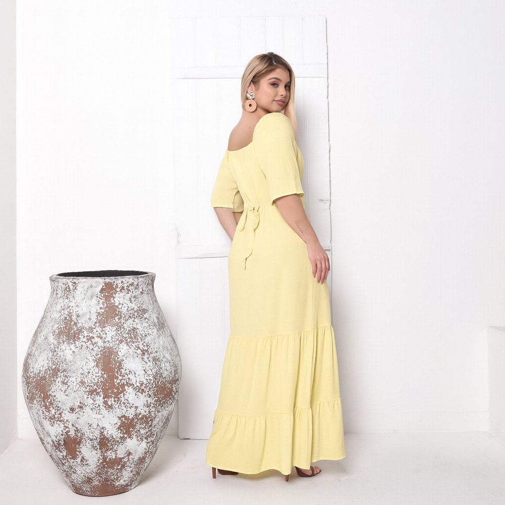 Transforme seu guarda-roupa com esse vestido midi feminino amarelo, um verdadeiro curinga que traz sofisticação e praticidade em cada detalhe.