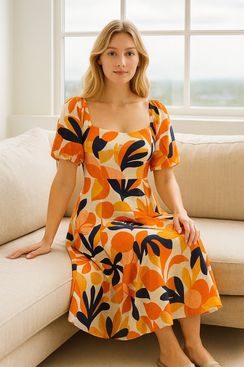 Adquira agora seu vestido midi feminino estampado, um vestido elegante e ao mesmo tempo um vestido casual versátil que vai transformar o seu guarda-roupa.