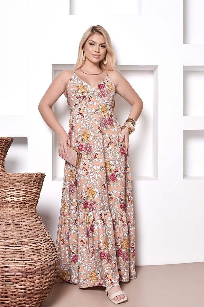 Encante-se com o Vestido Longo inspiração em estampas tropicais, desenvolvido para mulheres que amam unir elegância, conforto e praticidade.