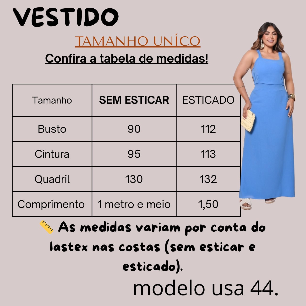 O lastex nas costas garante ajuste ideal, vestindo manequins do 44 ao 48 com muito conforto.