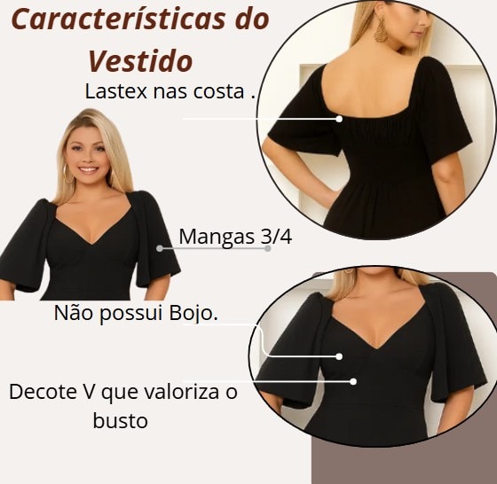 ⚠️ Devido ao lastex nas costas, o vestido veste bem do P ao G.