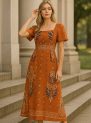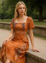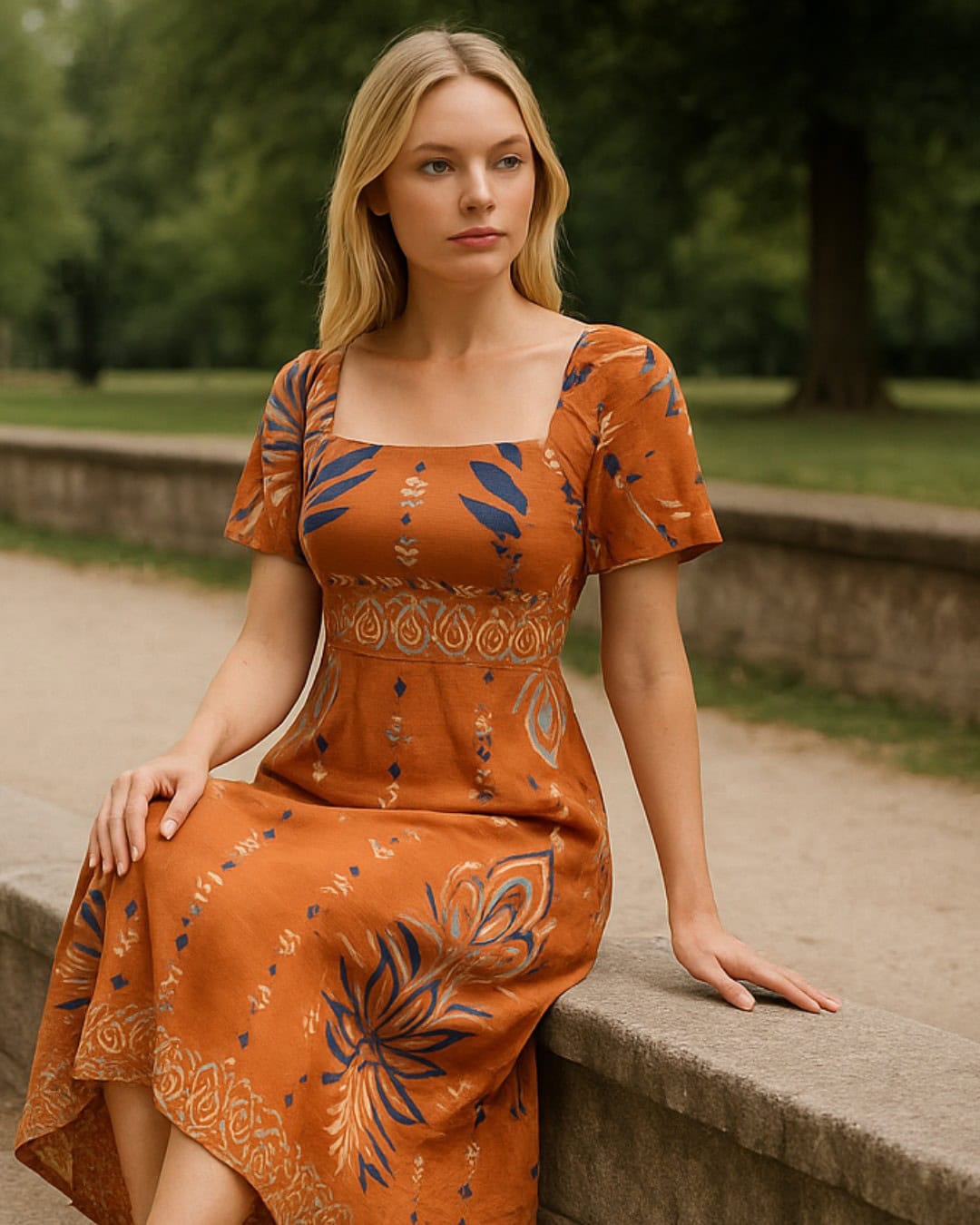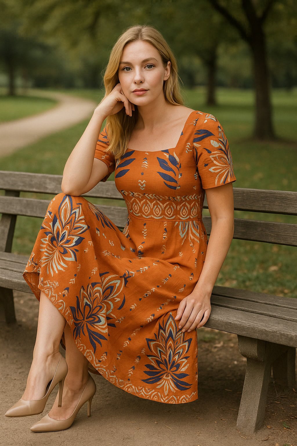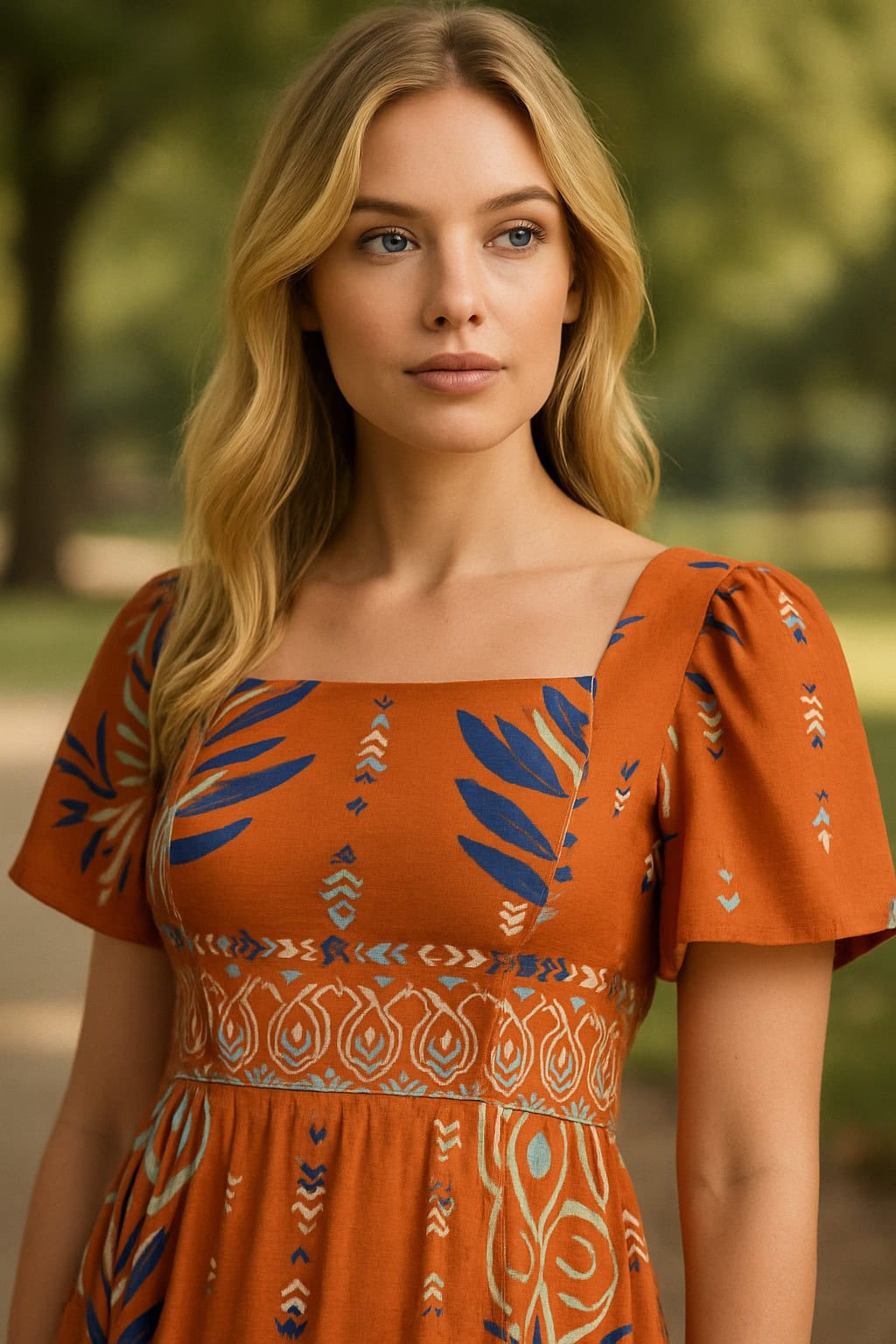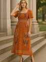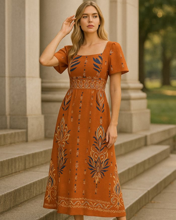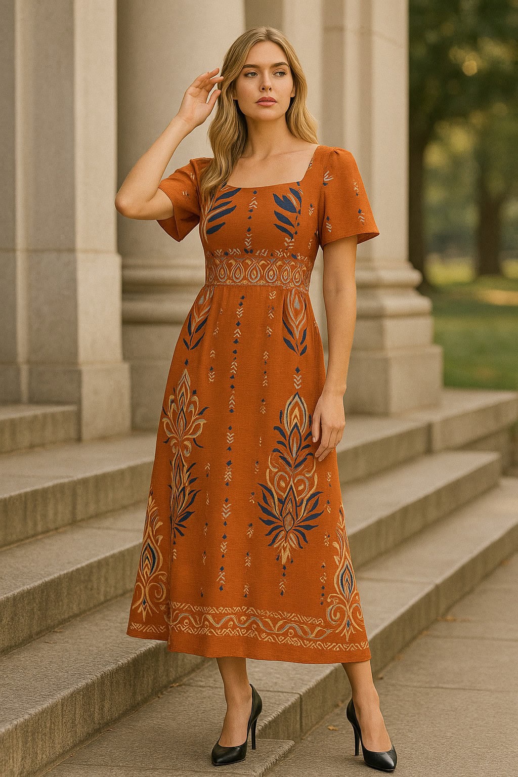 Vestido Midi Marrom com Estampa Étnica – Feminino e Charmoso