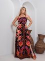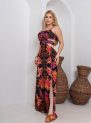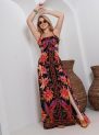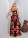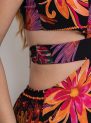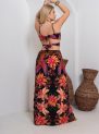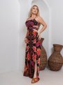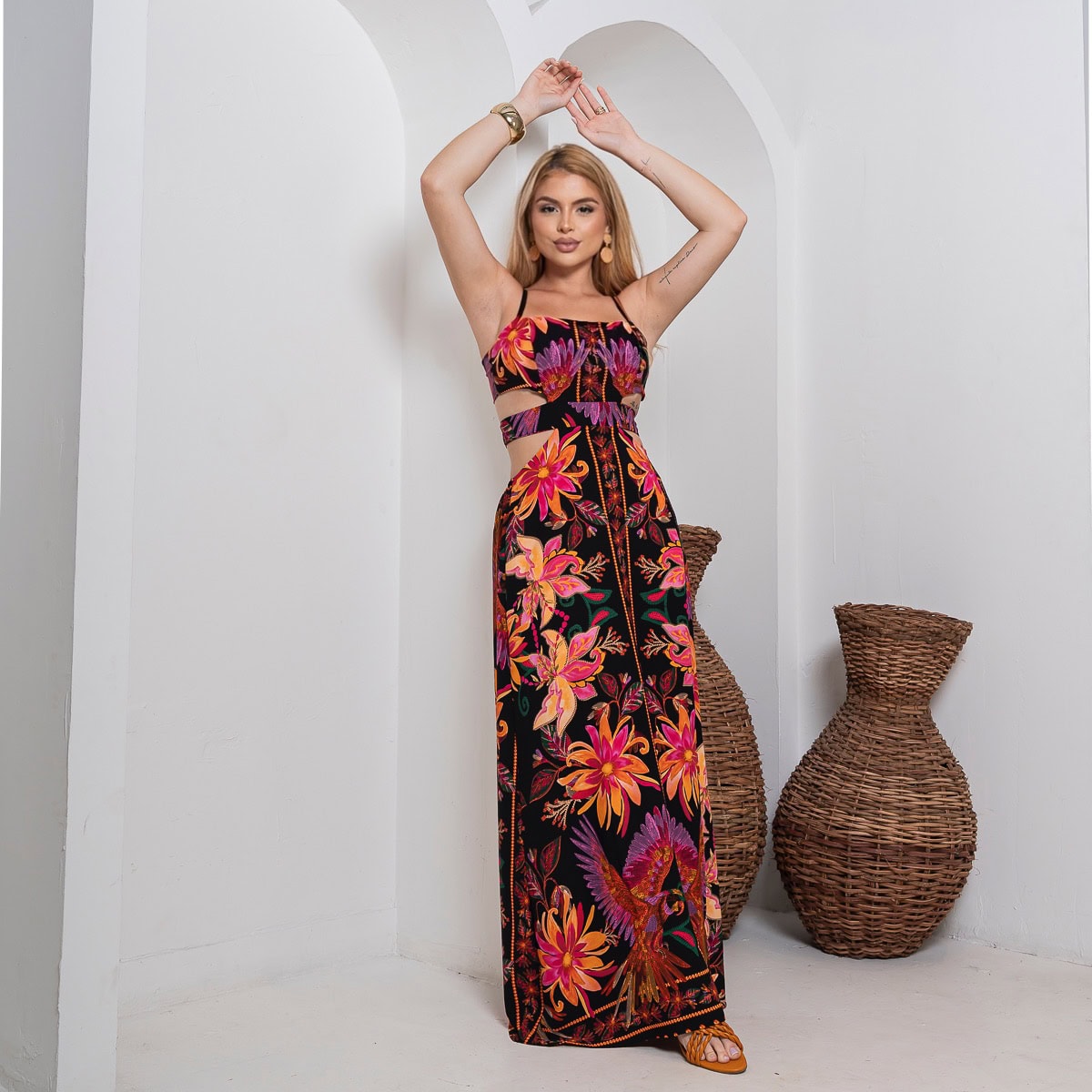 Vestido Longo com Recortes Laterais e Bojo – Estampa Floral Tropical